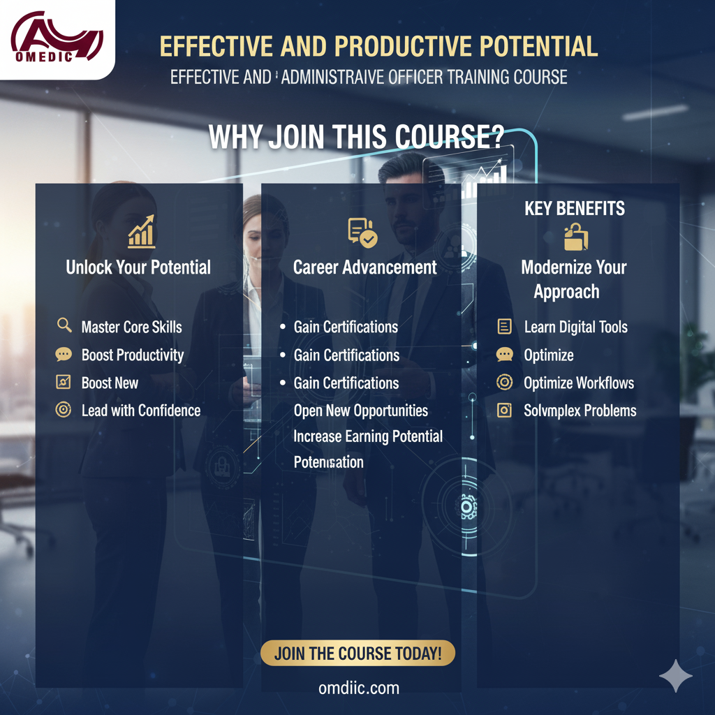 المؤسسات تبحث عن الإداري الذي يجمع بين الكفاءة والإنتاجية. شهادة من أوميديك في هذا المجال تجعل سيرتك الذاتية أقوى، وتزيد من فرصك في الترقية أو الحصول على وظيفة أفضل.